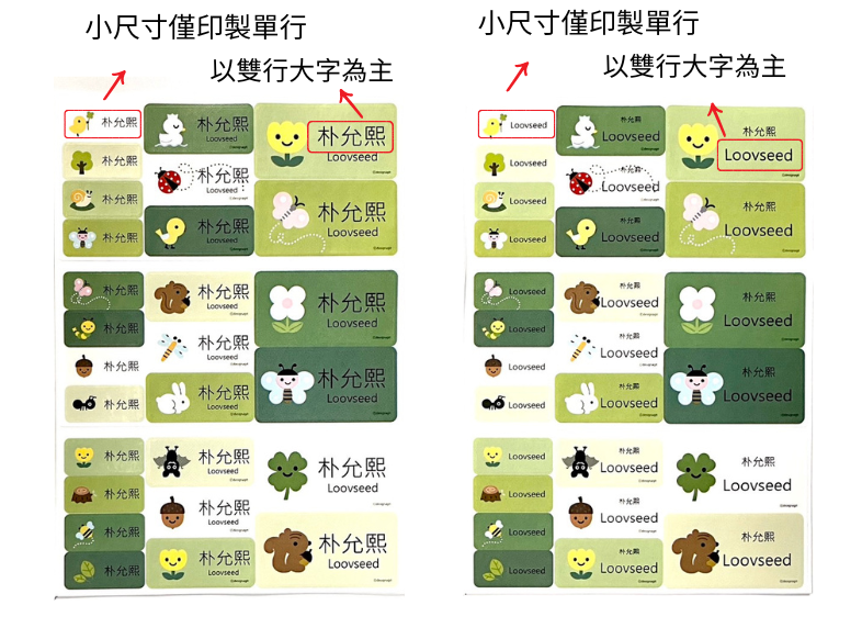 ◽️ 除小尺寸之外,其他尺寸可以分上、下兩行印製